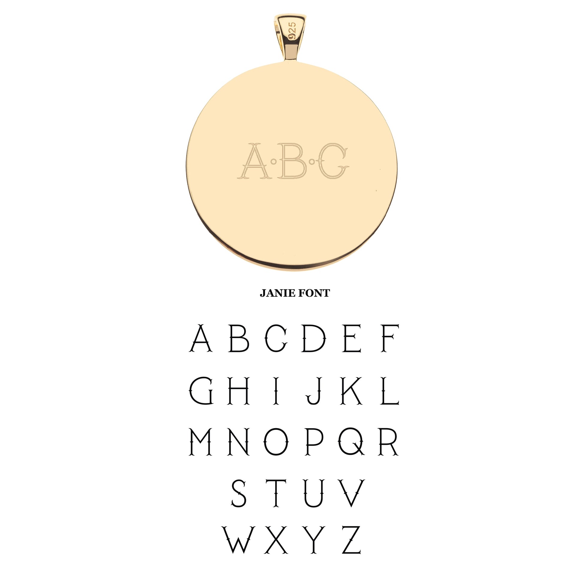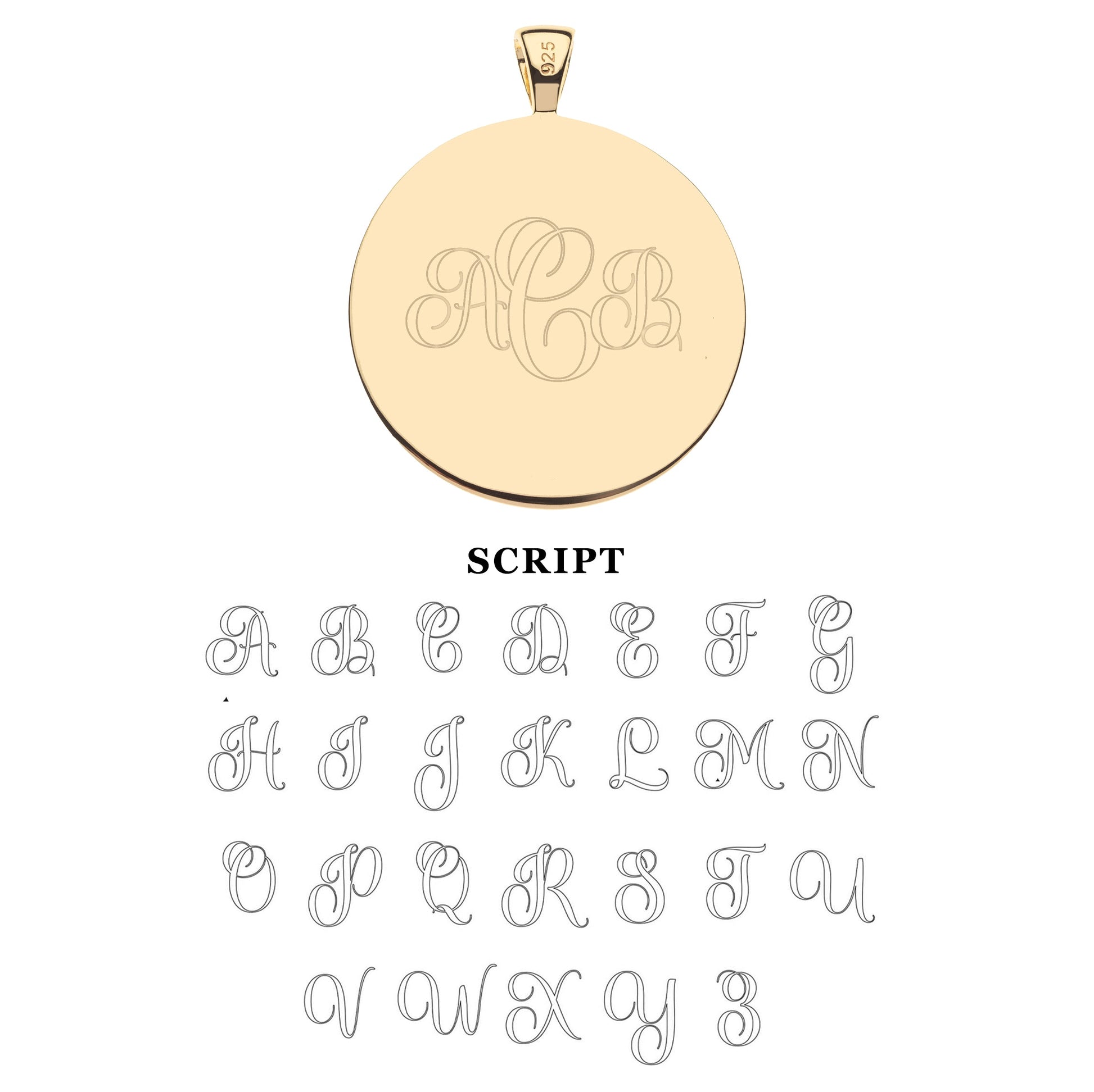Personalize this pendant by selecting three letters to engrave! We have four fonts to choose from for this pendant.