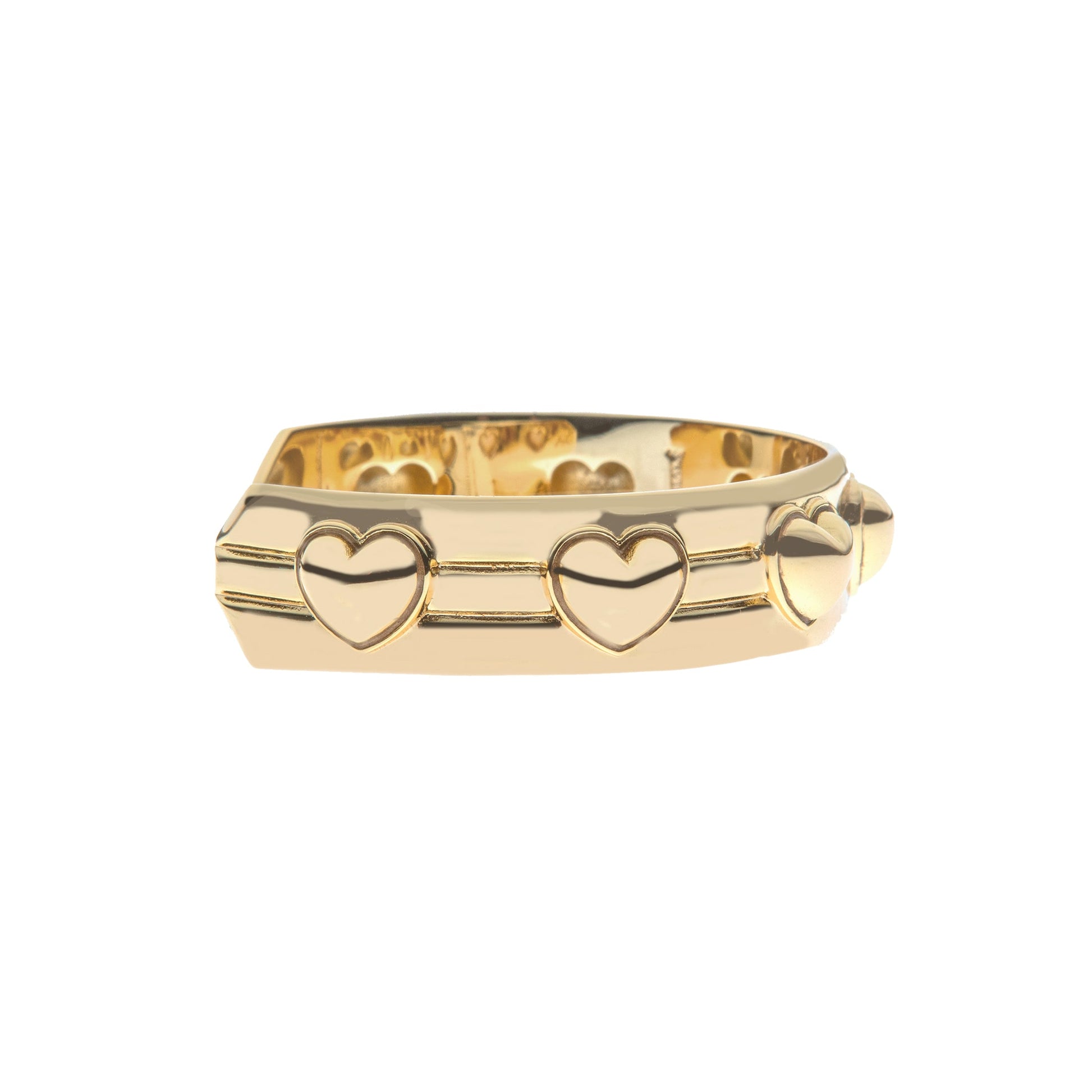 WE ARE OBSESSED. Obsessed with love. Obsessed with hearts. And we love a cuff to wear with your coins. Modern and high polished and accented with hearts, this bracelet is an anchor to your bracelet stack.