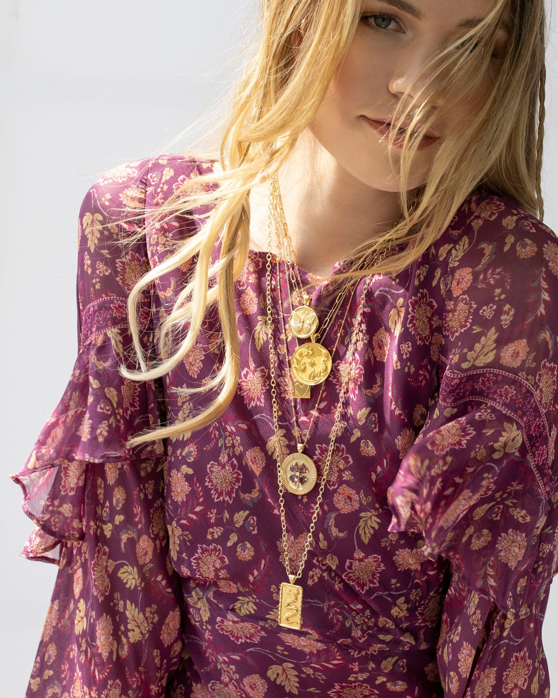 A very special fine jewelry version of our Original LUCKY coin. 14k gold with heart shaped blue topaz stones, placed in the shape of a 4 leaf clover. Hand engraved on the back with ‘lucky’.