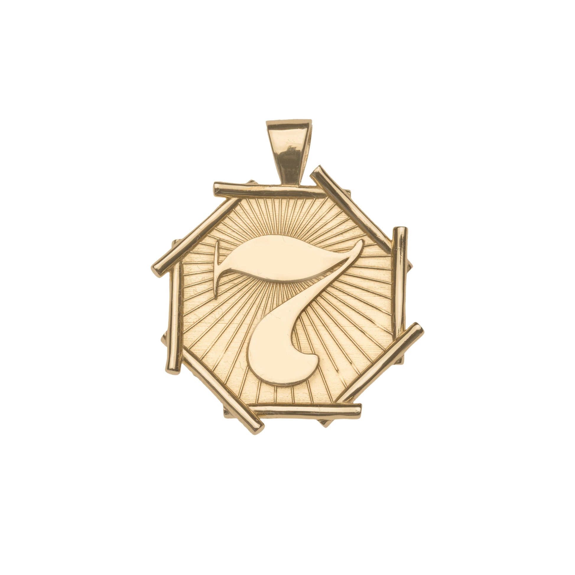 - Pendant made of sterling silver heavily plated in 14k gold.